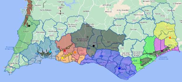 Aljezur, Alte, Arrochela, Cacela, Junqueira, Lagoa, Messines |