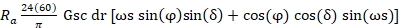 A distância relativa inversa Terra-Sol, dr, e a declinação solar, δ, são dadas por: